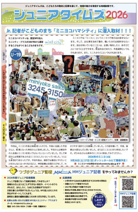 ホーム ジュニアタイムズ2026 2026/02/22 SHARE ツイート シェア はてブ Google+ Pocket LINE 今年度もジュニアタイムズを発行しました。 ジュニア記者の活動のようす、記事をぜひごらんください。 下記をクリックすると2ページずつごらんいただけます。 junia1_8P junia2-7P junia3-6P junia4-5P